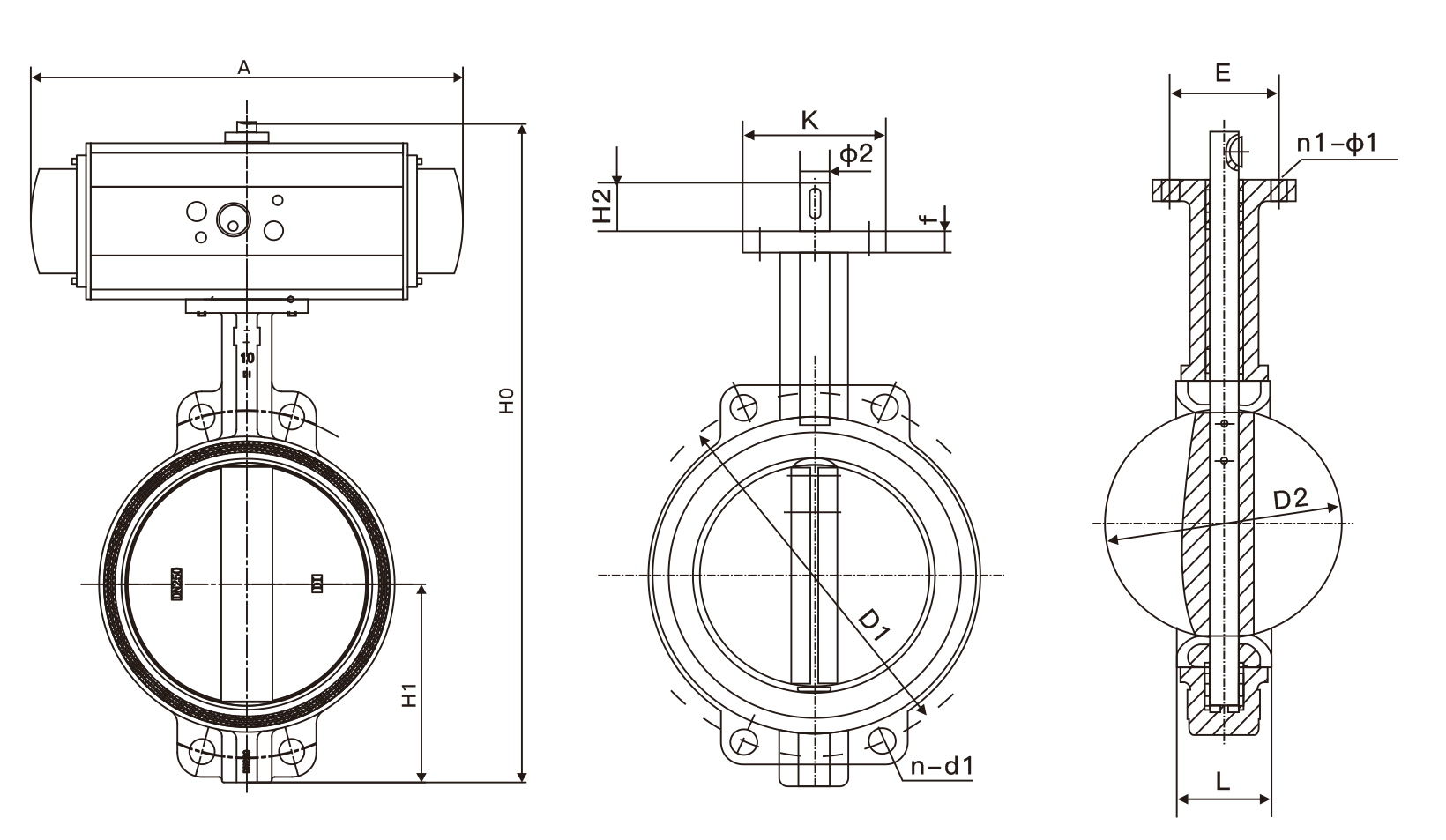 氣動對夾中線蝶閥主要由中線型軟密封蝶閥和氣動執行器組合而成。蝶閥流道均為全襯彈性橡膠,碟板采用不銹鋼,碟板與密封接觸面部位經過精細研磨確保光滑性。使蝶閥在關閉或開啟時碟板無間隙的緊貼著彈性橡膠,具有可靠的密封性。特別適用于清水、污水、燃氣、氣體等介質的管道上。該閥以壓縮空氣為動力接受(4~20mA)工業信號通過執行器推動閥桿帶動碟板旋轉(0-90°)任意開度調節來完成閥門的開關和調節。被廣泛用于水廠、電廠、鋼廠、造紙、化工、飲食等系統供排水中,作為調節和截止使用。